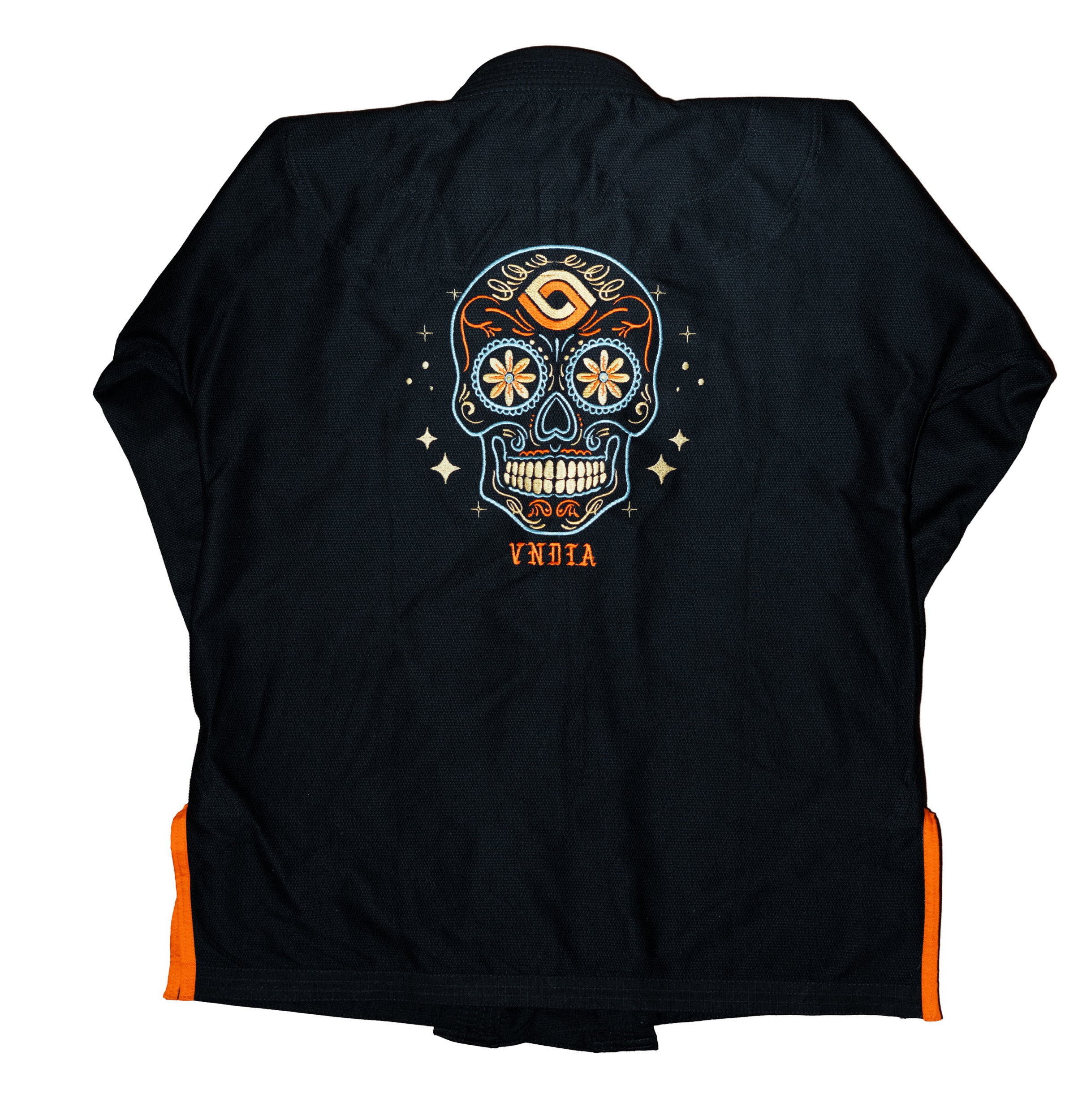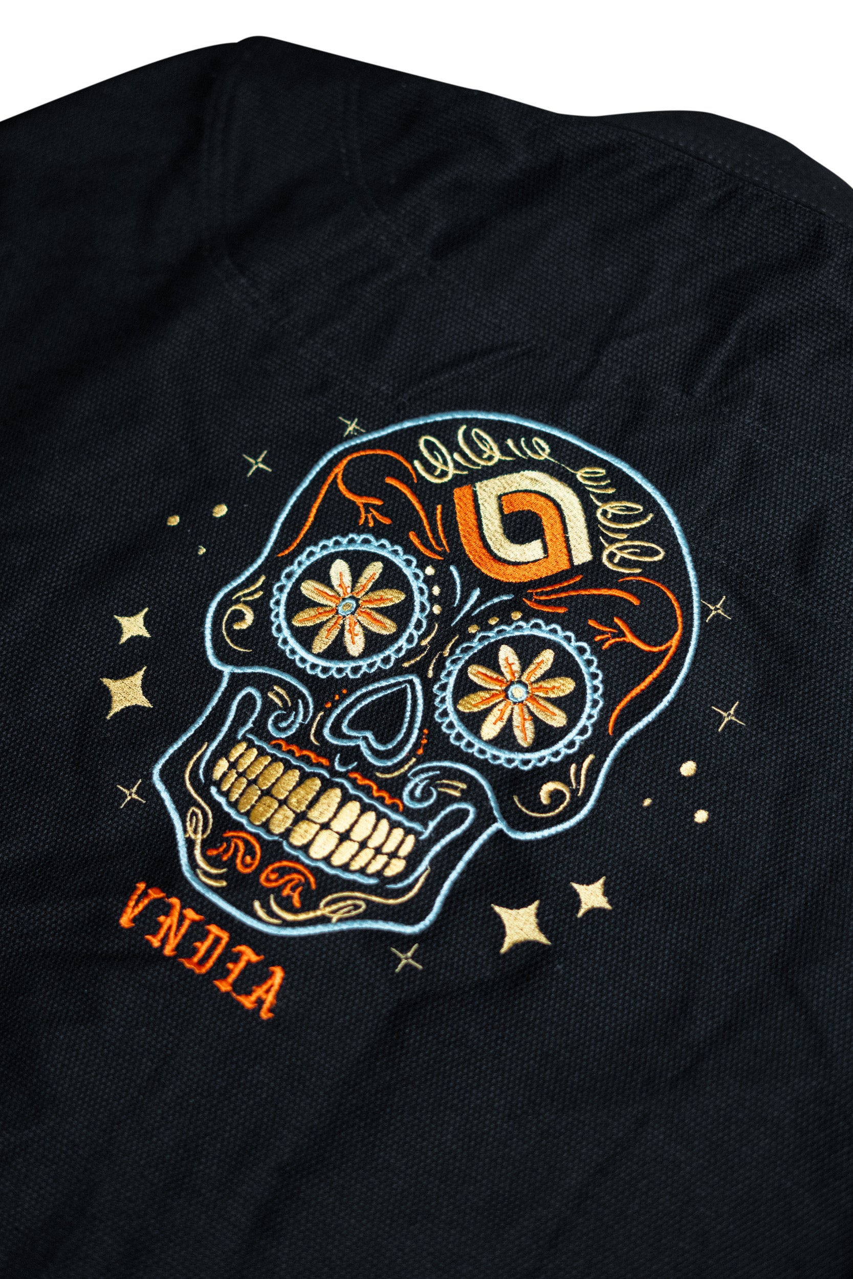 Inspired by Día de los Muertos, the Legacy Never Dies gi honors those who came before us—the mentors, teammates, and loved ones whose spirits live on through the art. The chest reads Amor Eterno (Eternal Love), a reminder that what we give on the mat outlasts us.